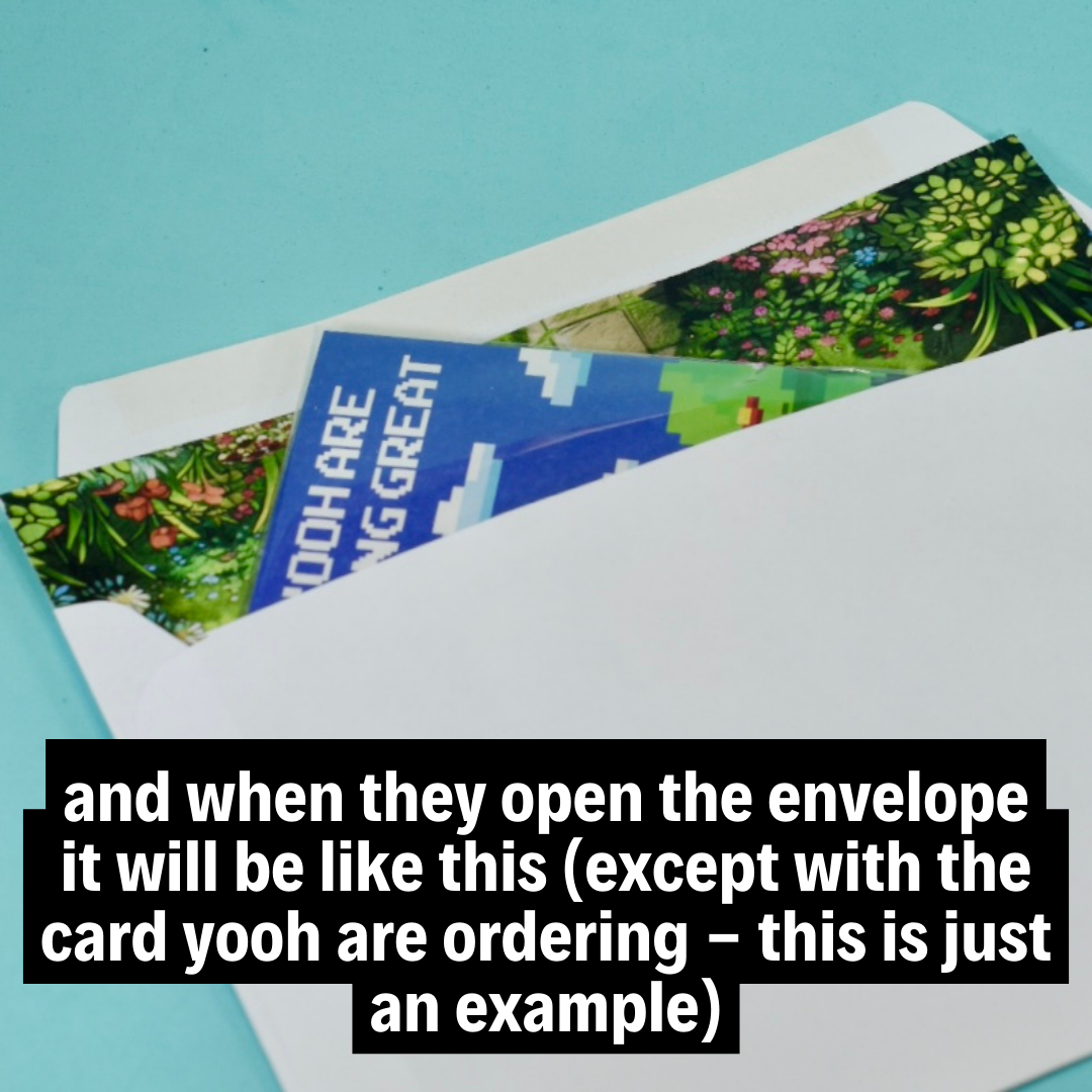 ✅ greeting card (3 × 4") - front message + bonus megatent scene on back