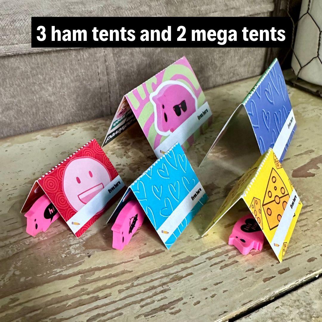 ✅ 3 ham tents - a different little fold-up home for each age ham
