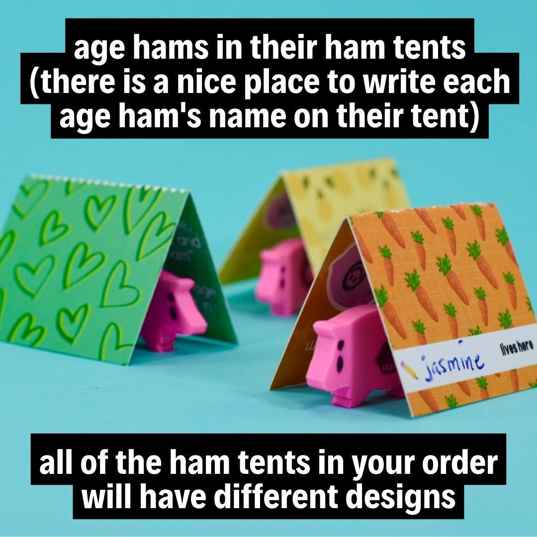 ✅ 3 ham tents - a different little fold-up home for each age ham