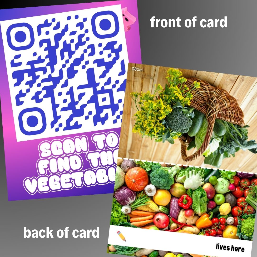 send this nonsense to a friend that might quietly enjoy looking at vegetables (the qr code sends them to a website with pictures of vegetables)