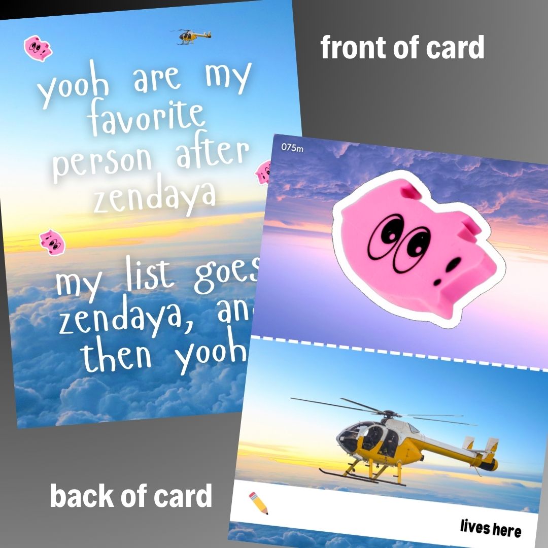 ✅ greeting card (3 × 4") - front message + bonus megatent scene on back